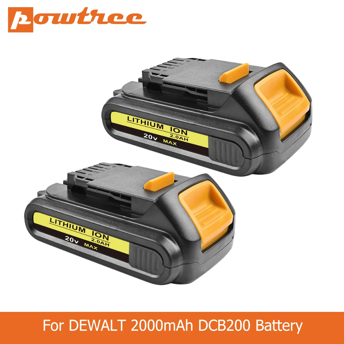 Best Seller Powtree 20V 2000mAh DCB200 Li-ion Rechargeable Power Tool Battery For DEWALT DCB203 DCB181 DCB180 D
