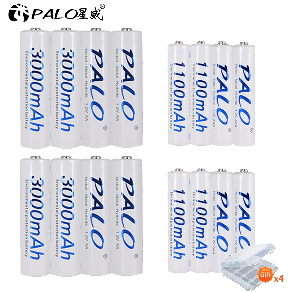 Big Promo 8Pcs PALO 1.2V 3000mAh AA Rechargeable Battery and 8Pcs 1100mAh AAA Rechargeable Batteries For Toys