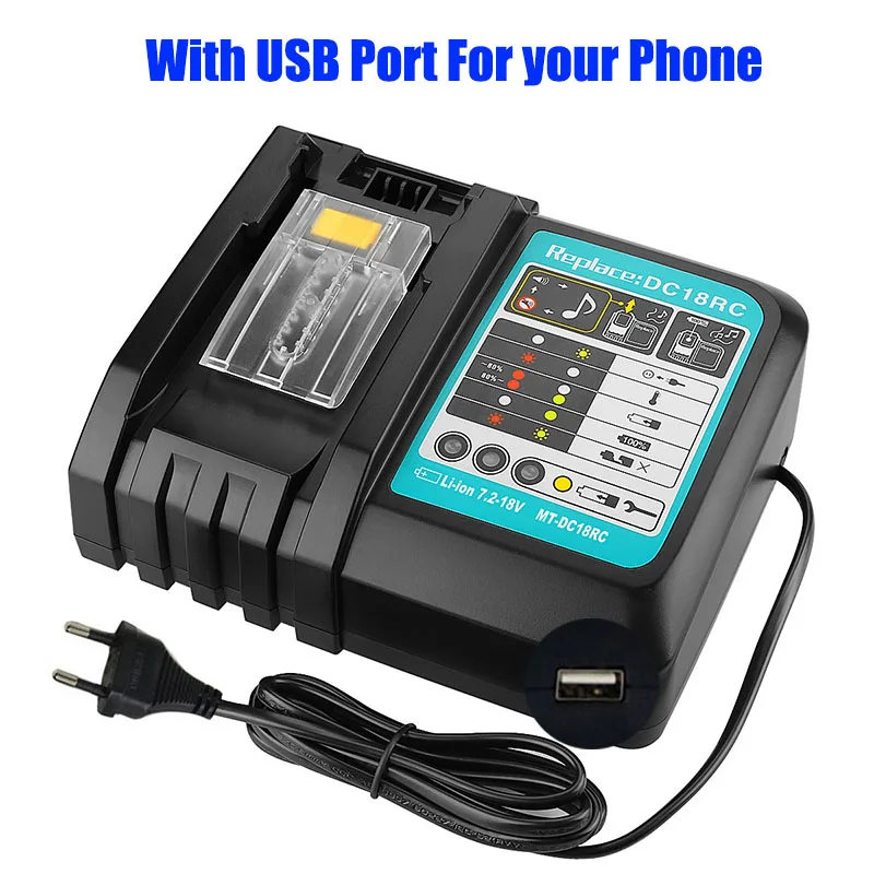 Li-ion Battery Charger Replacement Power tool Battery Charger for Makita 7.2V -18V BL1830 Bl1430 DC18RA DC18RC EU PLUG+ USB Port