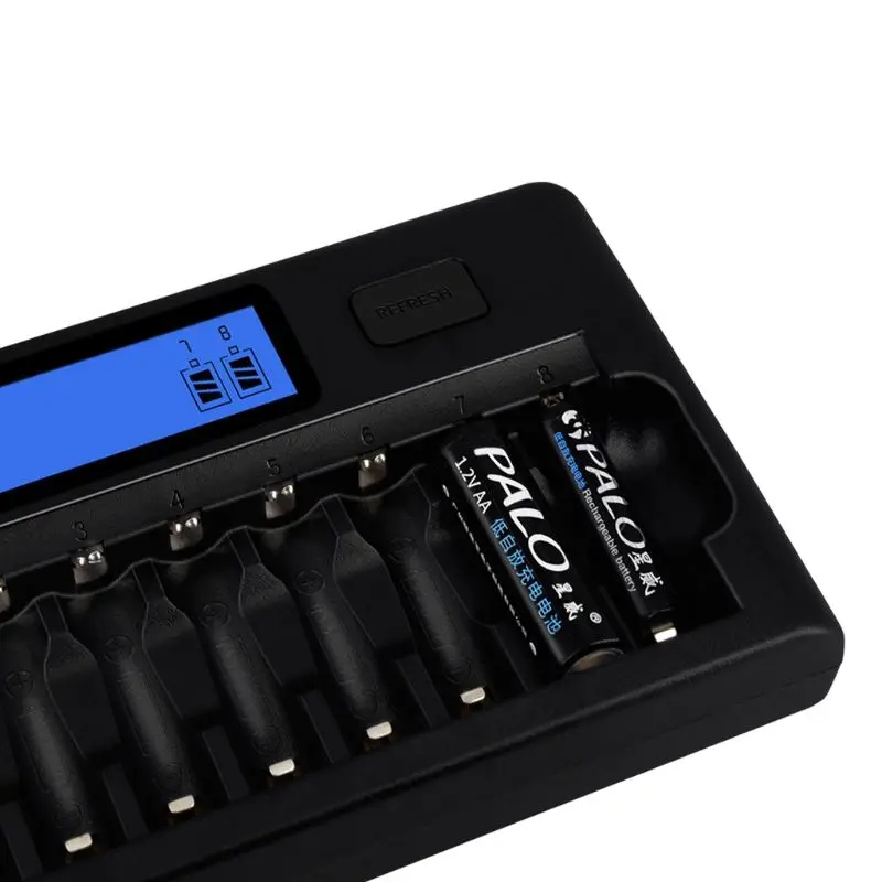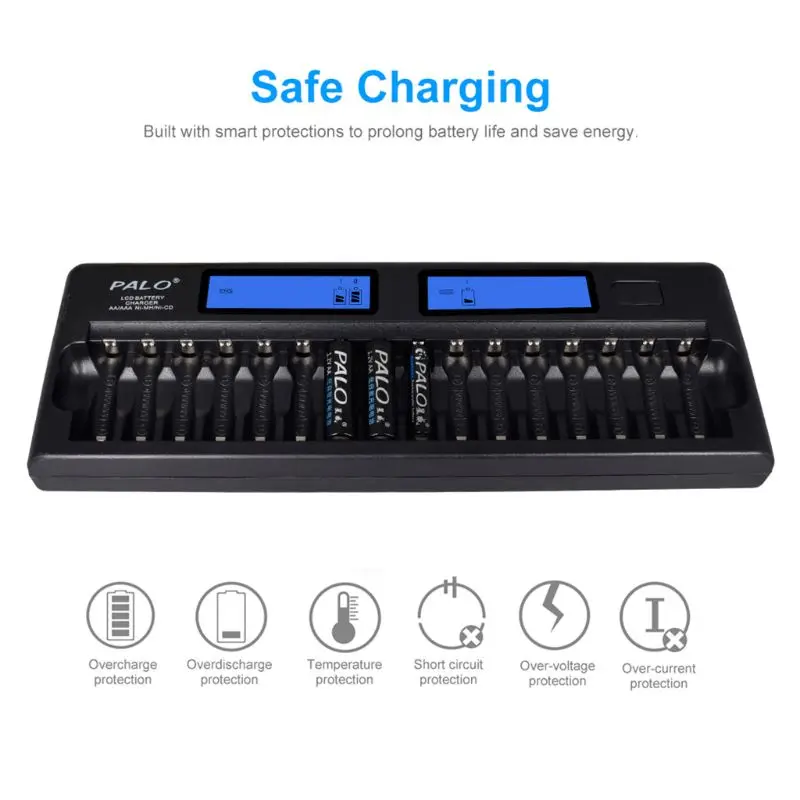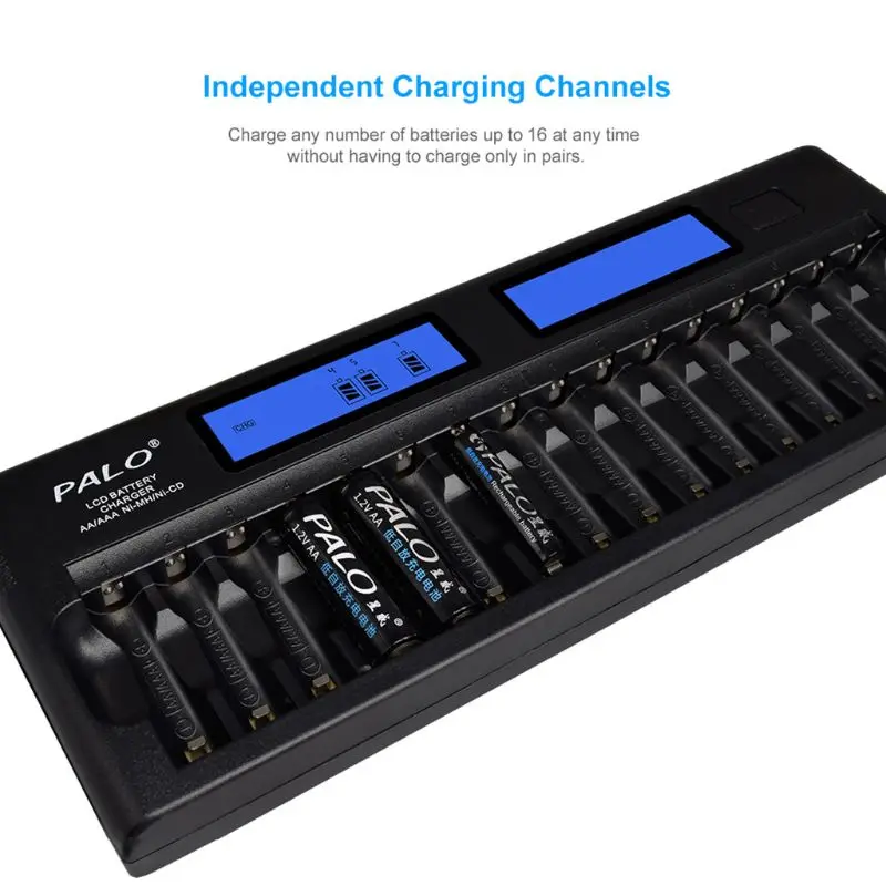 Best Seller 1Set 16 Slot Smart AA AAA NiMH NiCD Rechargeable Battery Charger with LCD Screen with Wall Adapter