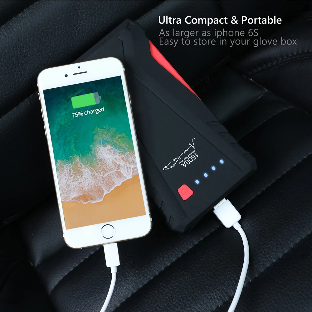 1500A Jump Starter Emergency Starting Device Cables Hight Capacity MIni Booster Portable Power Bank Starting Petrol Diesel Car