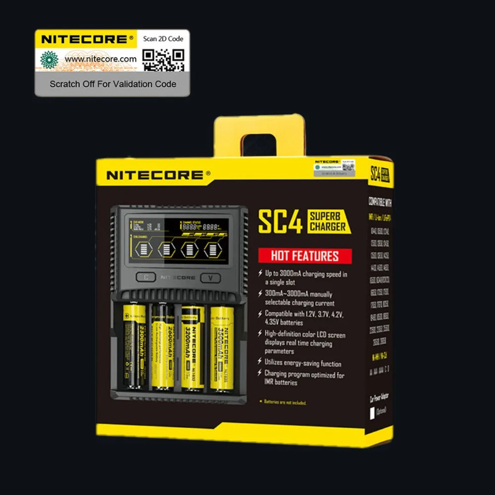 Hot Sale NITECORE SC4 Intelligent Faster Charging Superb Charger with 4 Slots 6A Total Output Compatible IMR