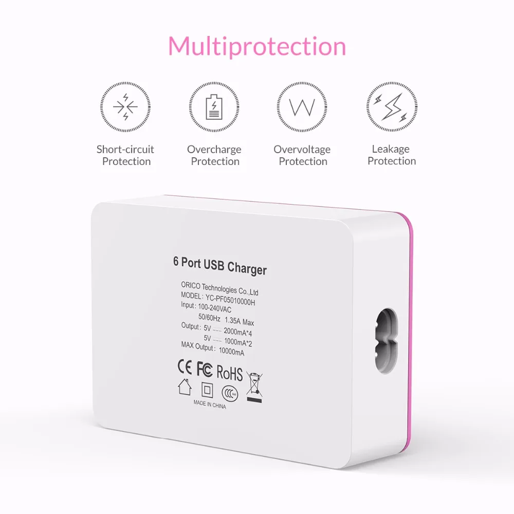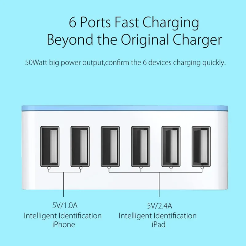 Buy Now ORICO CSA 6 Ports USB Fast Charger Desktop Power Adapter Charger 5V 2.4A 50W USB Charging for Samgs