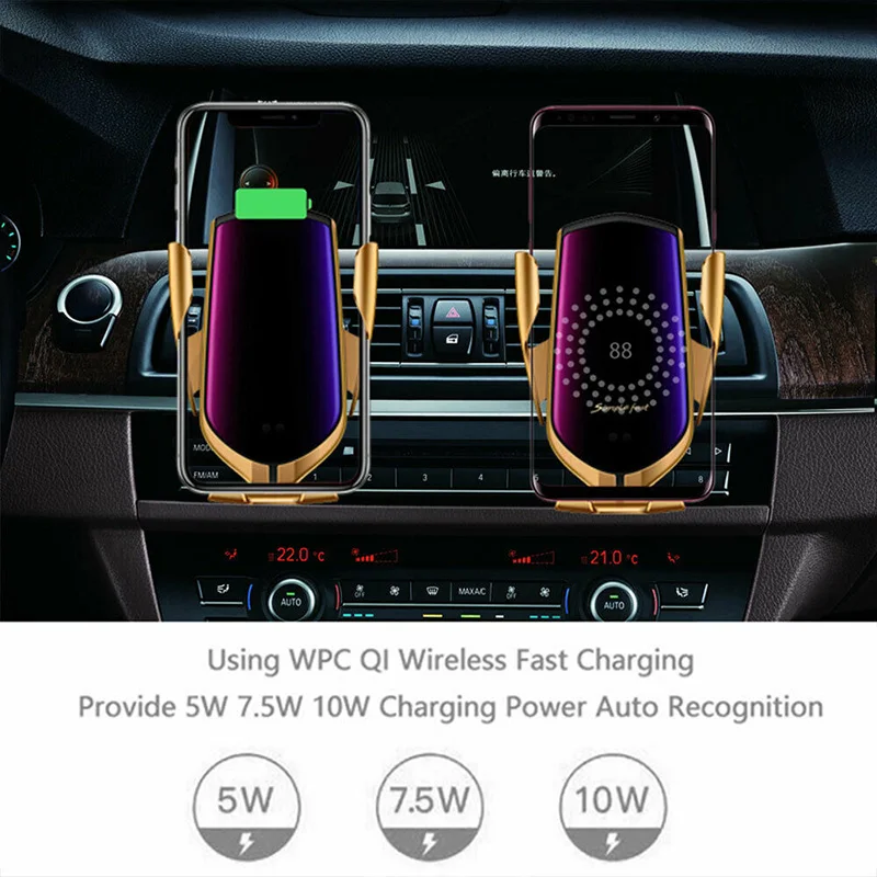 Car Wireless Charger Phone Holder Auto Clamping Mount Charging Bracket for Smartphone LHB99