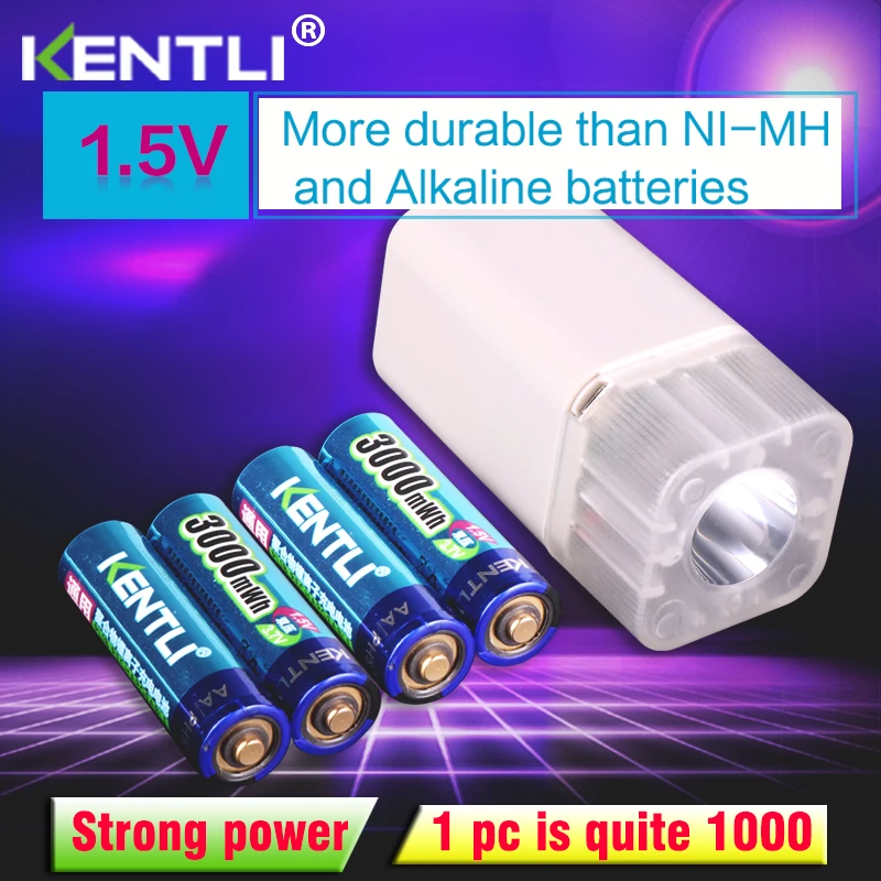 KENTLI 1.5v 3000mWh no memory effect aa rechargeable li-ion polymer lithium battery + 4 slots USB Charger