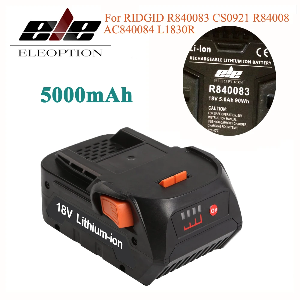 Big Promo ELE ELEOPTION Newest 18V 5000mAh Li-ion battery for RIDGID R840083 CS0921 R84008 AC840084 L1830R Fo