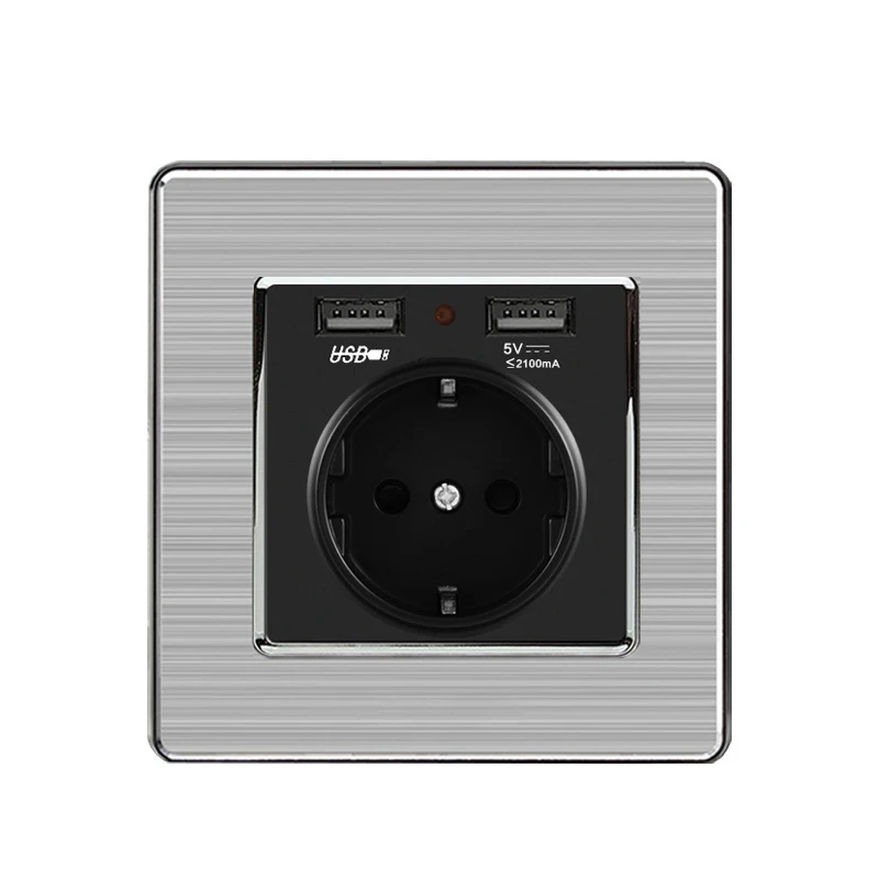 French Standard Socket Household Silver Aluminum Alloy Panel Switch Socket 90V-250V