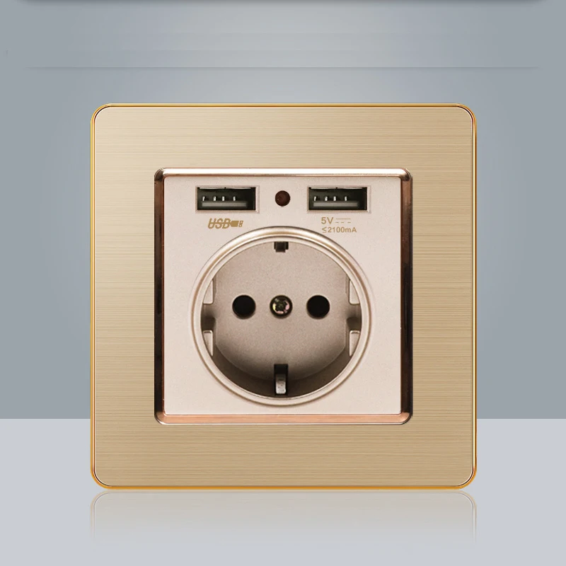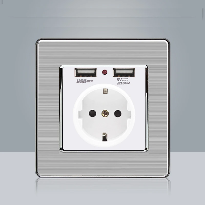 Hot Sale German socket Dual USB Charging Port 5V 2.1A Wall Charger Adapter LED Indicator 16A EU Socket Power