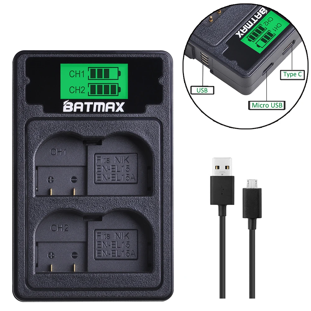 Big Promo LCD USB EN-EL15 EL15A EN EL15 Battery Charger with Type C for Nikon Camera D600 D610 D600E D800 D80