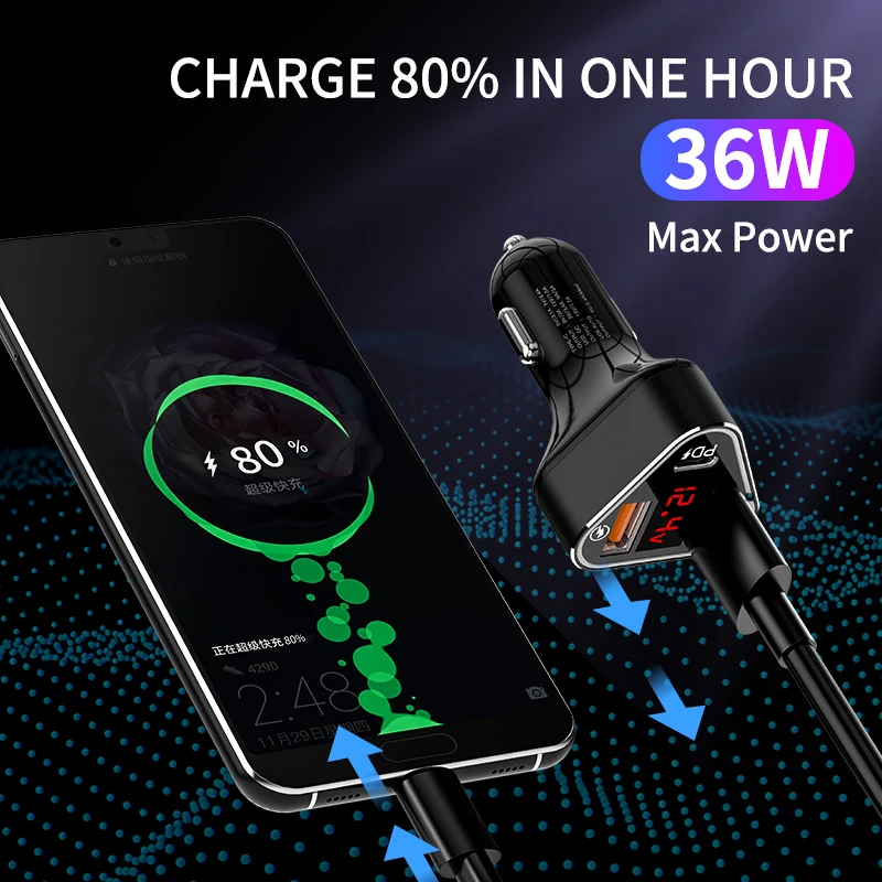iHaitun Luxury LCD 5A USB Car Charger For Samsung S9 S10 Quick USB 3.0 3.1 Fast Charge For iPhone 11 Huawei P30 Pro Oneplus 7 X