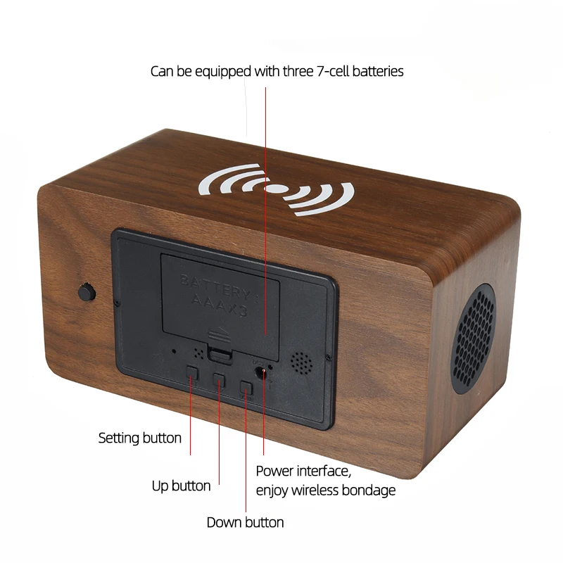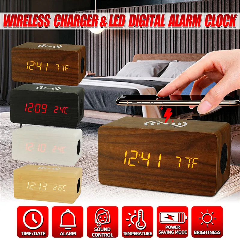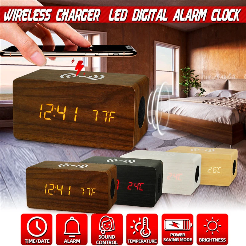 Buy Now Wireless Charging Led Digit Alarm Clock Audio USB Charger bluetooth Speaker Thermometer Phone Wirel