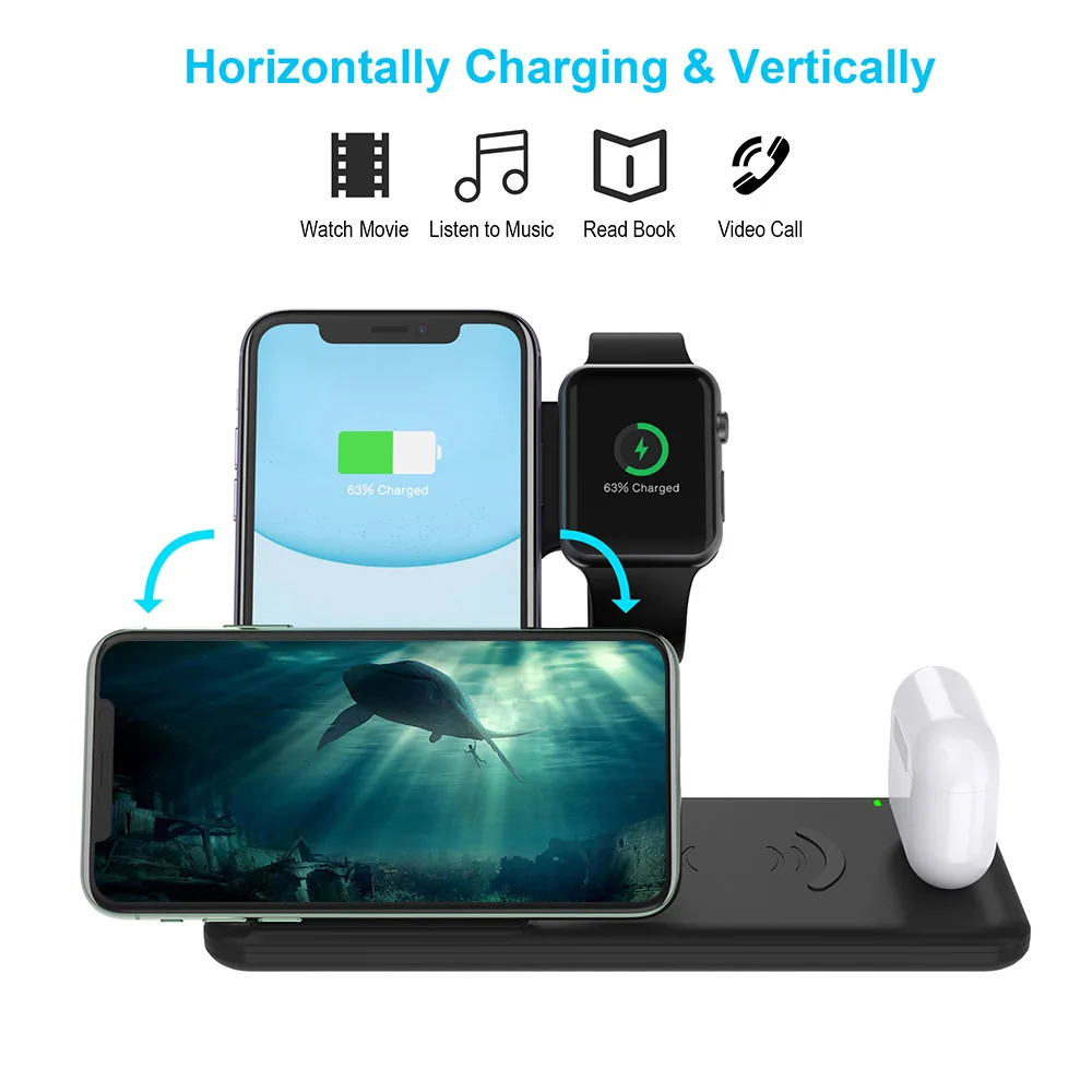 Hot Sale 15W Qi Wireless Charger For iPhone 11 Pro X XS MAX XR Fast Wireless Charging 4 in 1 Stand For Airpo