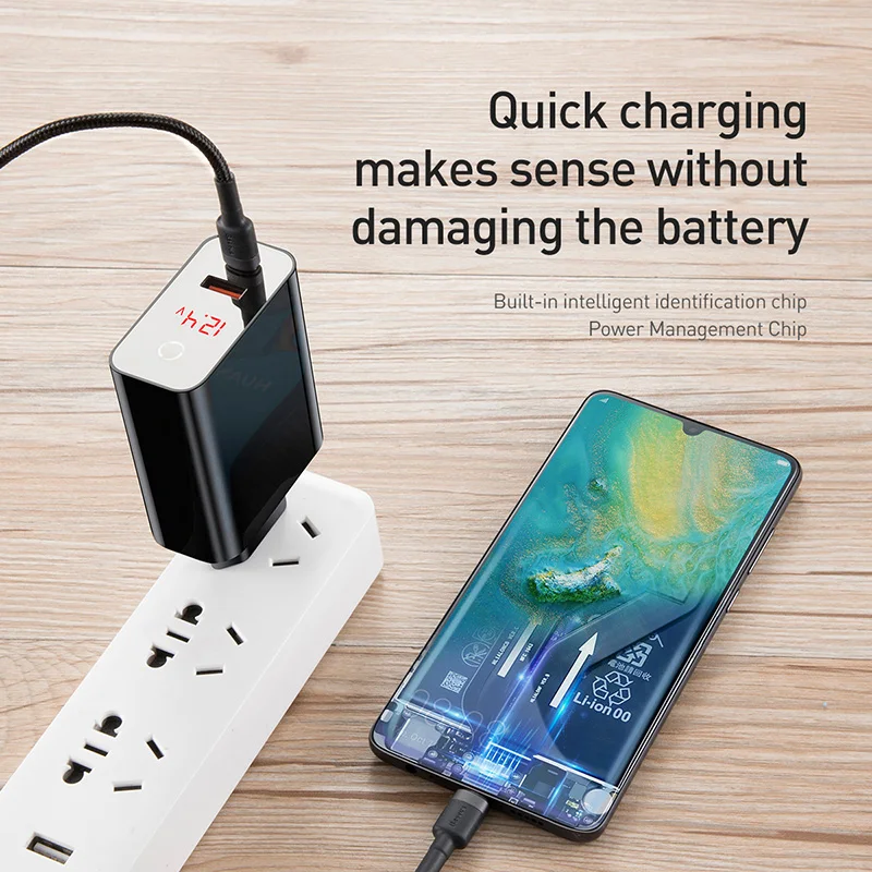 Best Seller Baseus 45W LCD Display USB Charger with Quick Charge 4.0 3.0 For Redmi Note 7 QC3.0 PD Fast Phone C