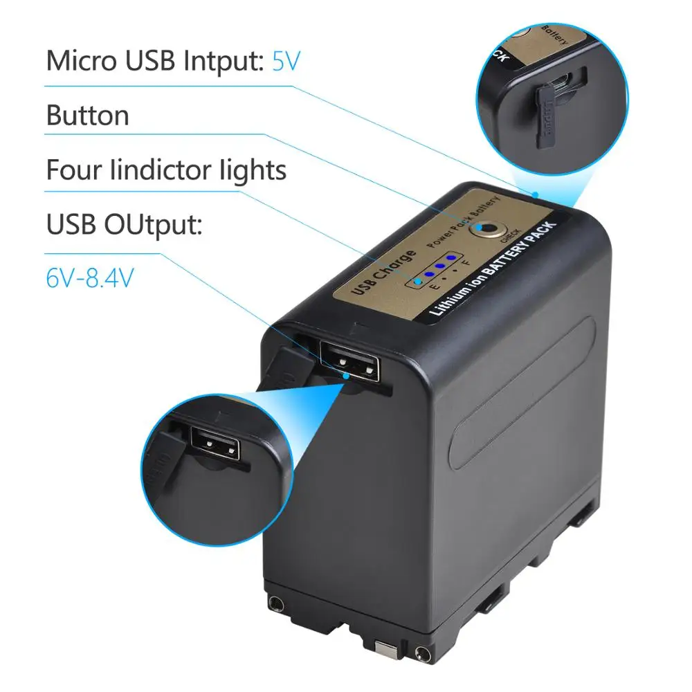 Batmax 7800mAh NP-F960pro NP-F970pro F960 F970 Battery with USB Charge Output For Sony PLM-100 CCD-TRV35 MVC-FD91 MC1500C L50